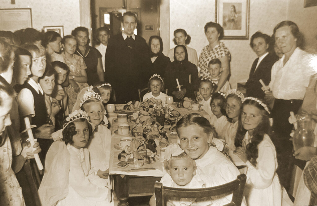 Ha ma visszagondolok, fura világ volt az, de nekünk természetes. Egyszerre jártunk hittanra és templomba, miközben kisdobosok és úttörők is voltunk. Elsős korunkban volt az elsőáldozás: a lányok fehér ruhában, koszorúval a fejükön, a fiúk fehér ingben és sötétkék nadrágban álltak sorba. Mise után kakaó és fonott kalács várt ránk, a reggeli, ami a gyerekkor ízét jelentette.