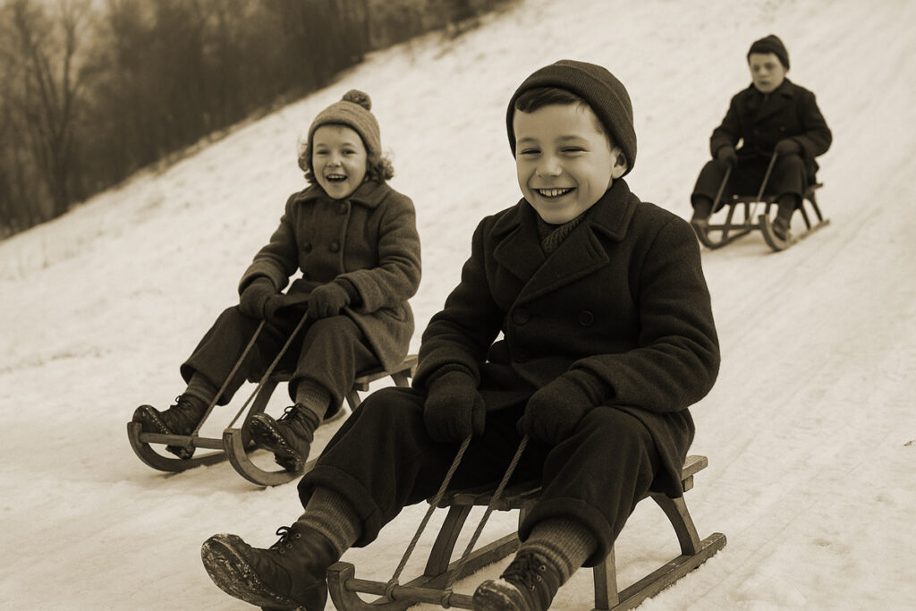 Volt egy egyszemélyes szánkóm, amit apám készített. A legnagyobb élmény mégis az volt, amikor az unokatestvérem, Miákits Feri hatszemélyes óriás szánkójára ülhettünk fel. Ő hátul ült, és a lábával kormányozta a monstrumot – isteni érzés volt.